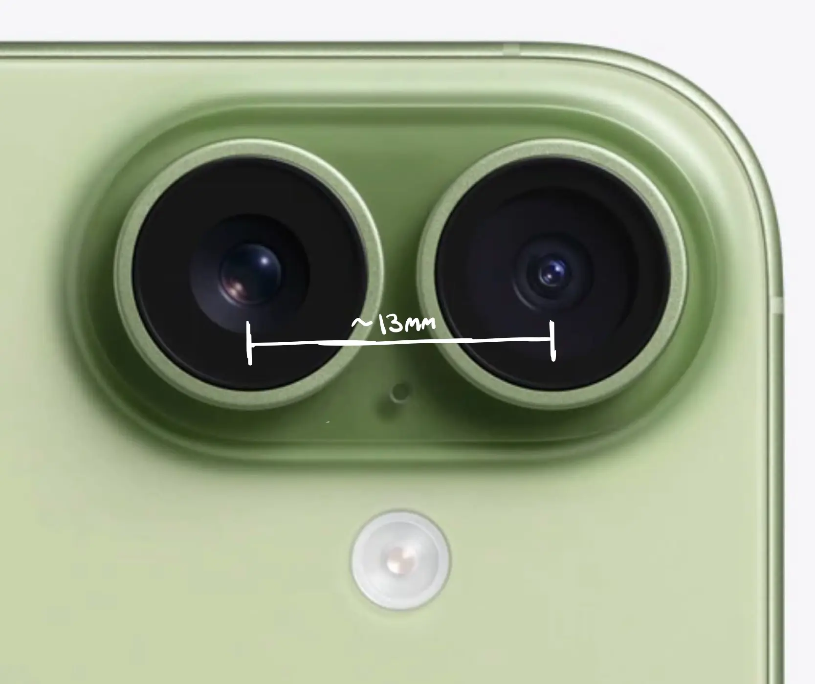 The short answer is yes, with significant caveats. The cameras were designed for computational photography, not stereo vision. They have different focal lengths, iOS exposes no stereo calibration API, and the baseline (the physical distance between camera centers) is roughly 13mm. Professional stereo rigs in robotics typically run 10–30cm. My baseline is about the width of a thumb.